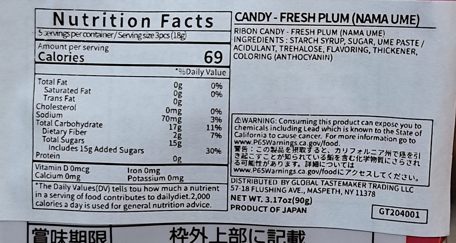Ribbon Nama Ume Ame Hard Candy Sweet & Sour Ume Plum, 3.87 OZ, 1 bag is backordered and will ship as soon as it is back in stock.