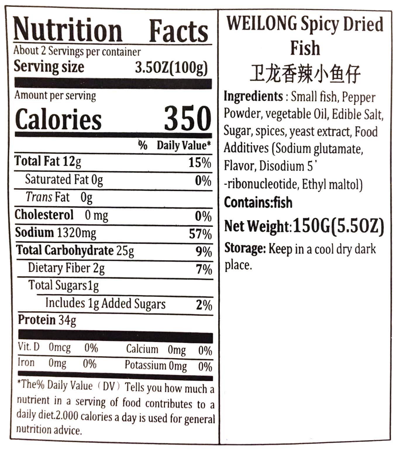 Wei Long Spicy Spiced Fried little Fish Snack 150g