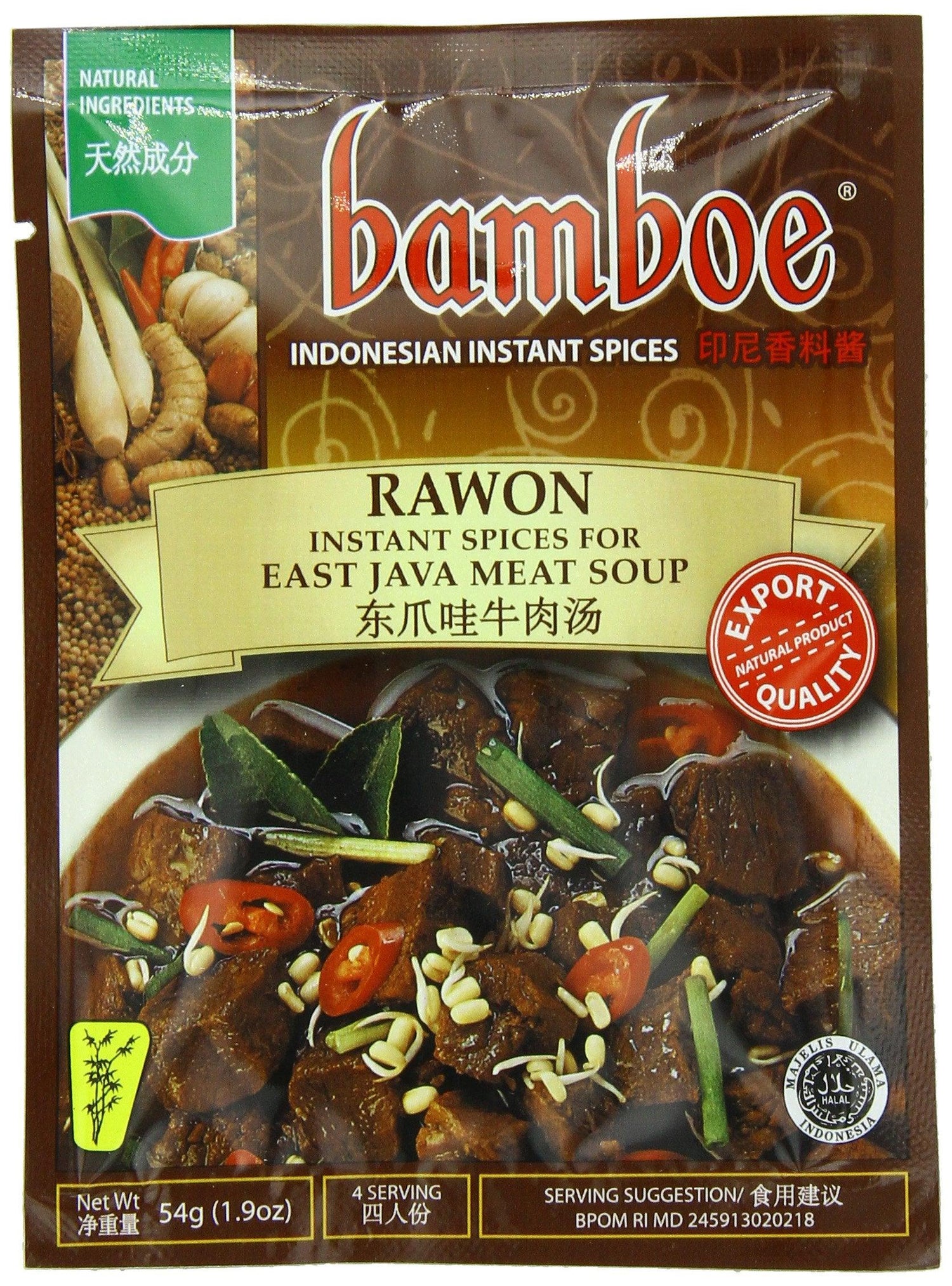 Bamboe Rawon East Java Beef Soup, 1.9-Ounce (Pack of 12) is backordered and will ship as soon as it is back in stock.