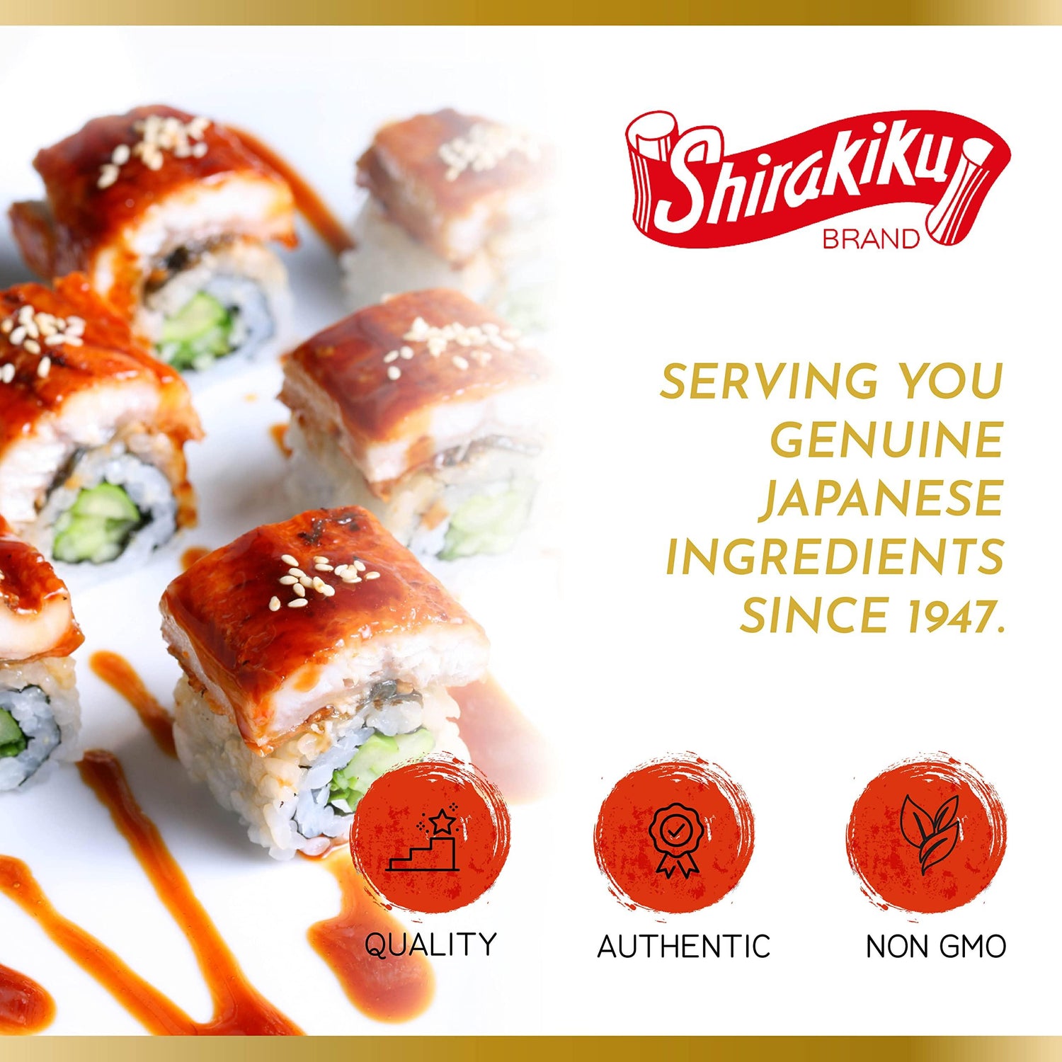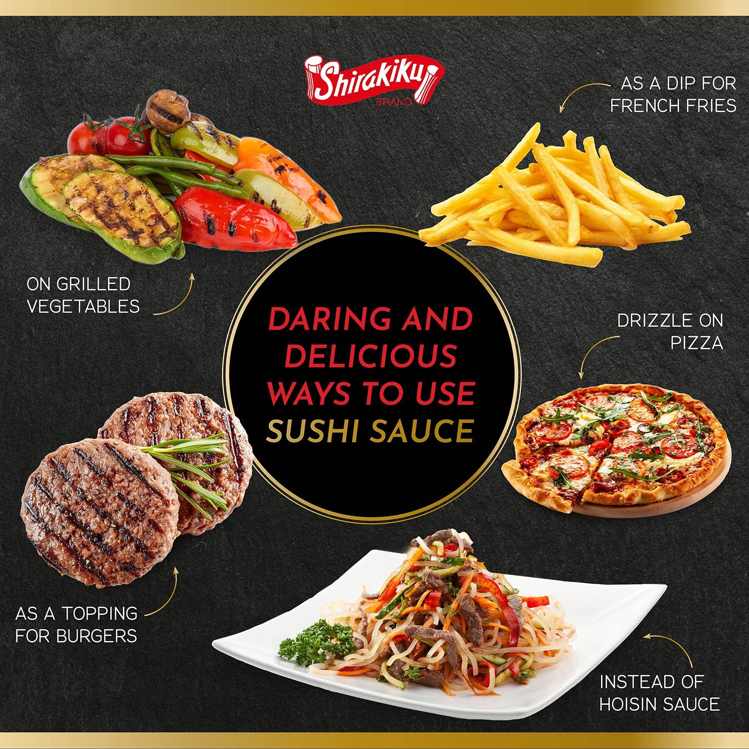 - AUTHENTIC EEL SAUCE Shirakiku Sushi sauce is a premium, restaurant quality sauce you can enjoy from the comfort of your home. As a shelf stable pantry staple, it is not only excellent on sushi, but can be used as a Japanese BBQ sauce for grilled chicken, fish, vegetables, and more.