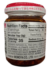 Momoya - Seasoned Oil with Red Pepper and Garlic, 3.8 Ounces, (1 Jar)