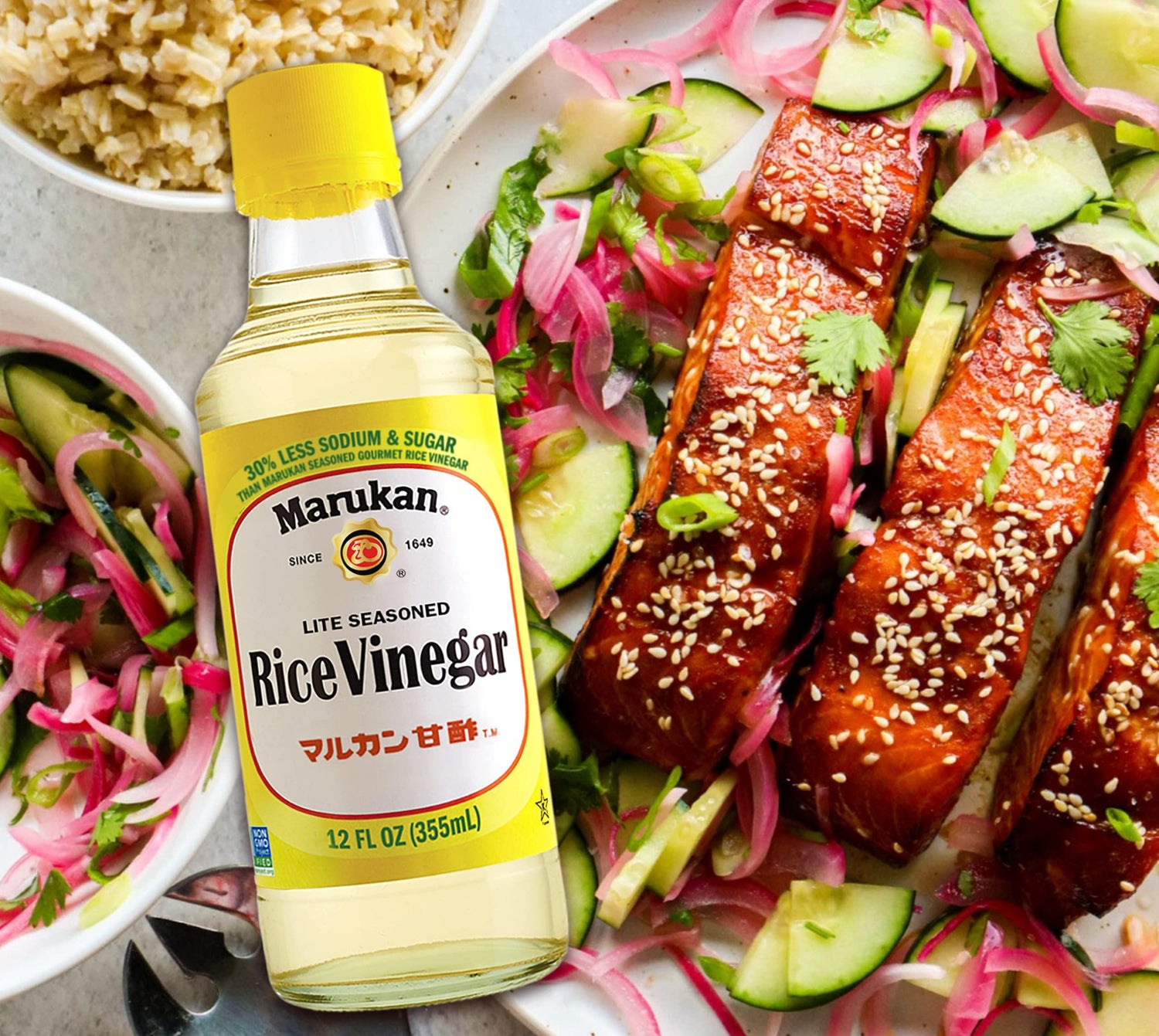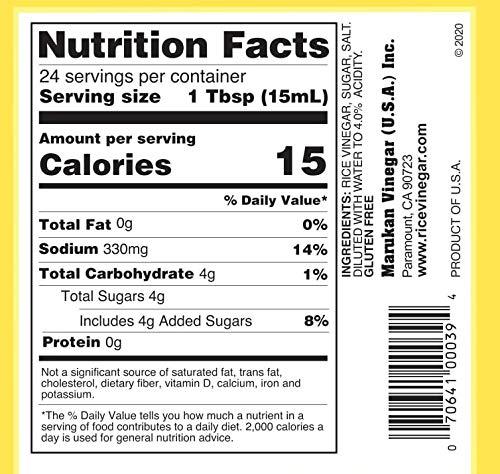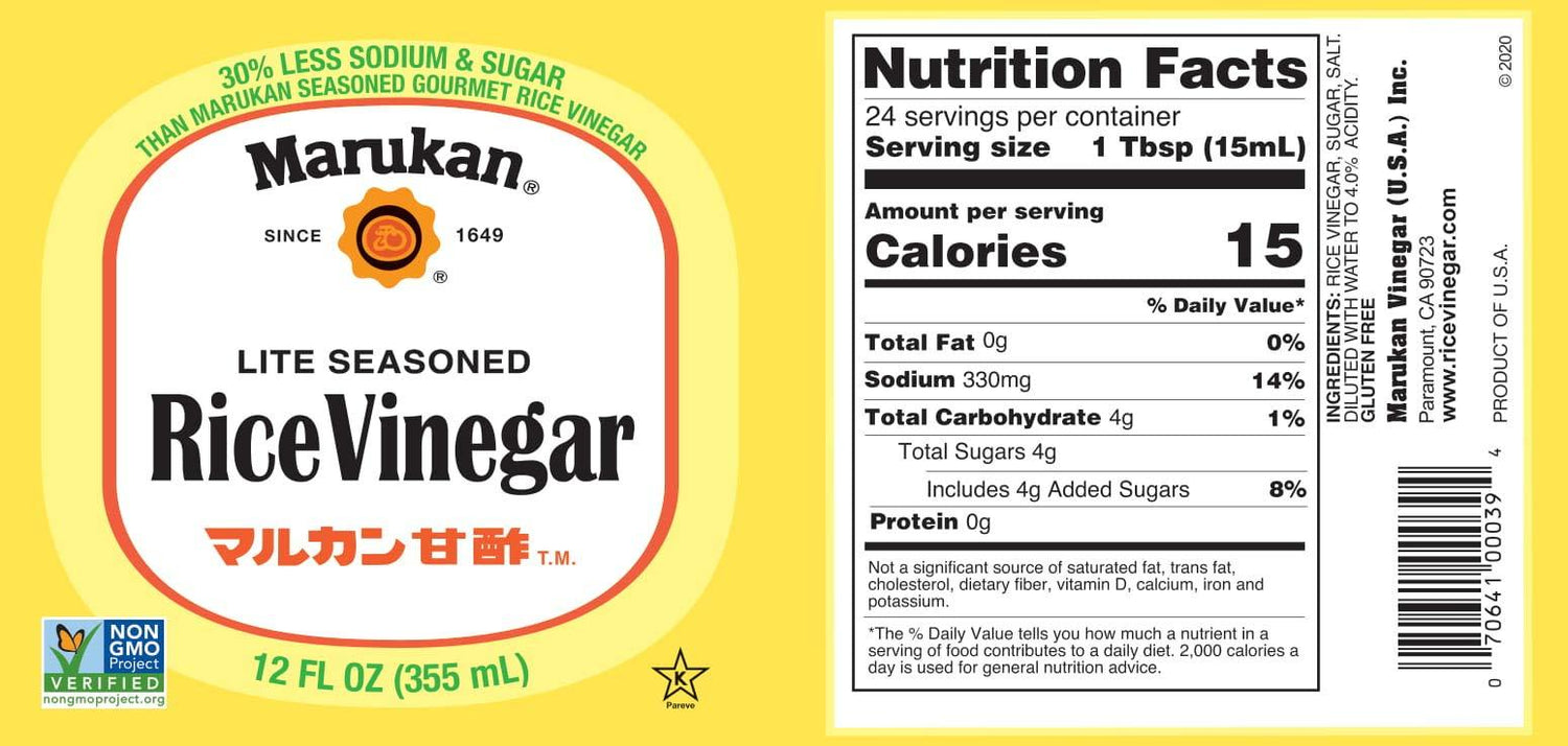 Marukan Lite Seasoned Rice Vinegar: Low in sugar and sodium, this healthful vinegar is perfect for use in low-calorie diets. It is fat-free, and excellent on salads to enhance the natural flavor of vegetables. The delicately low acidity allows a pleasant, mild flavor and contains 32% Less Sodium than Marukan Seasoned Gourmet Rice Vinegar.