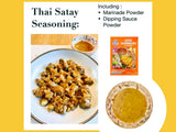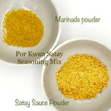 Por Kwan Satay Seasoning Mix consist of both the meats marinade and also sauce mix for dipping. Marinade are suitable for all meats type.