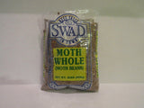 Whole muth (moth) beans are small with a brown shell and yellow interior. Moth have a strong, earthy aroma and a rich nutty flavor. Moth dal cook in little over an hour and don't need to be pre-soaked. It is usually cooked with spices and grated coconut or boiled and pureed in thick curries and soups.